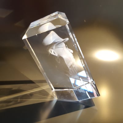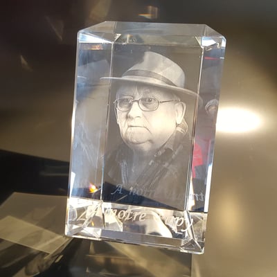 Bloc rectangulaire facetté en verre de haute qualité et d'une très grande pureté.